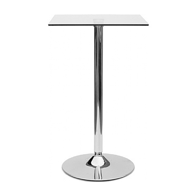 With a thick stem and a base width of 450mm, there is no risk of this table from toppling. The rigid frame supports the 600mm x 600mm safety glass surface with ease. With a diameter of 8485mm the table can comfortable fit up to four bar stools around it. This table can also be purchase within a package, with a number of bar stools that we have to offer. The shiny chrome frame and the clear glass surface add a contemporary feel to any kitchen or dining environment.